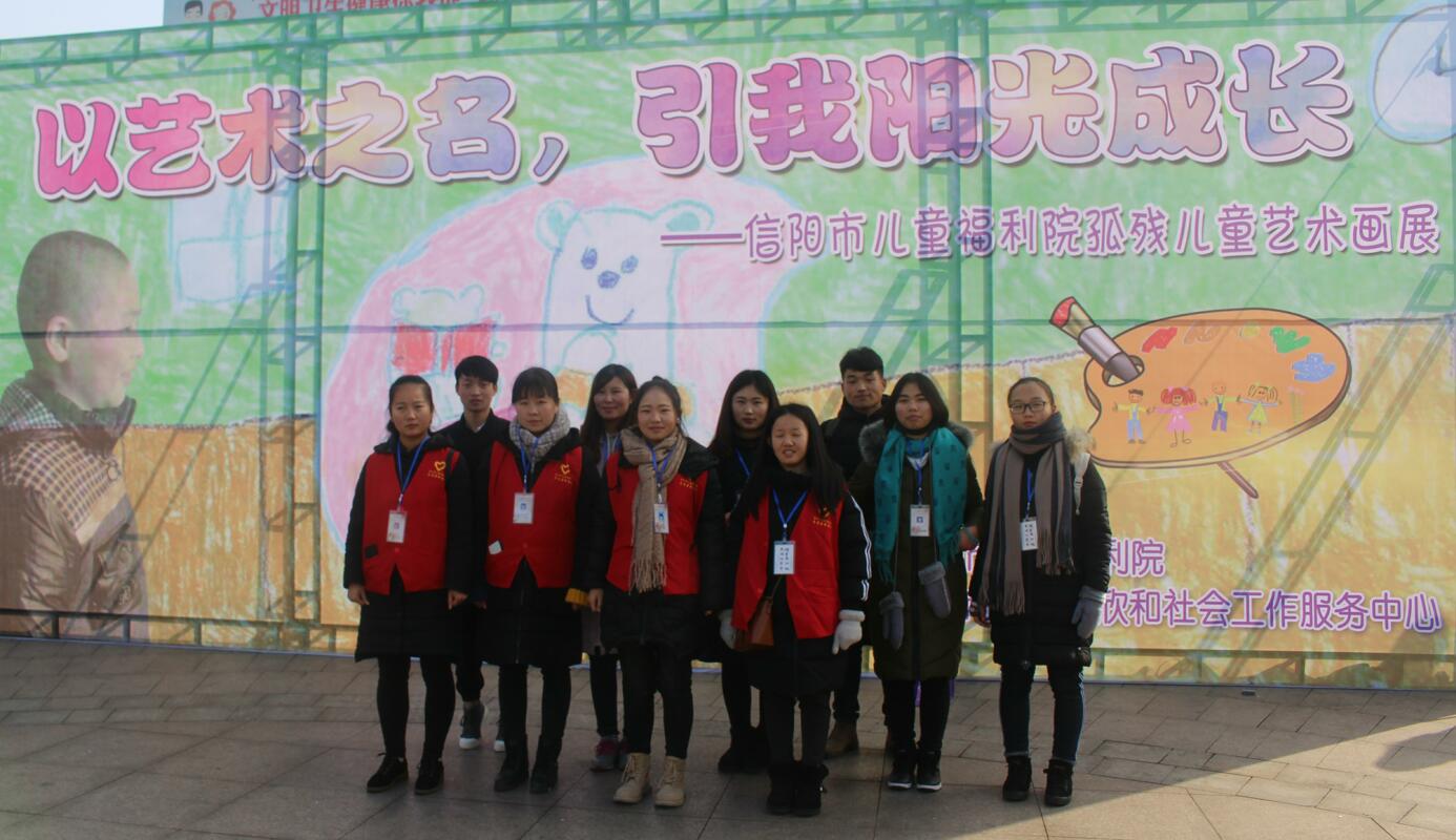 为弘扬志愿服务精神,丰富bet36365官网学生精神涵养,12月16日,bet36365官网大学生艺术设计协会、大学生书法爱好者协会成员于体彩广场积极参与信阳市“以艺术之名 引我阳光 成长”之儿童福利院艺术画展活动,进行志愿服务活动。