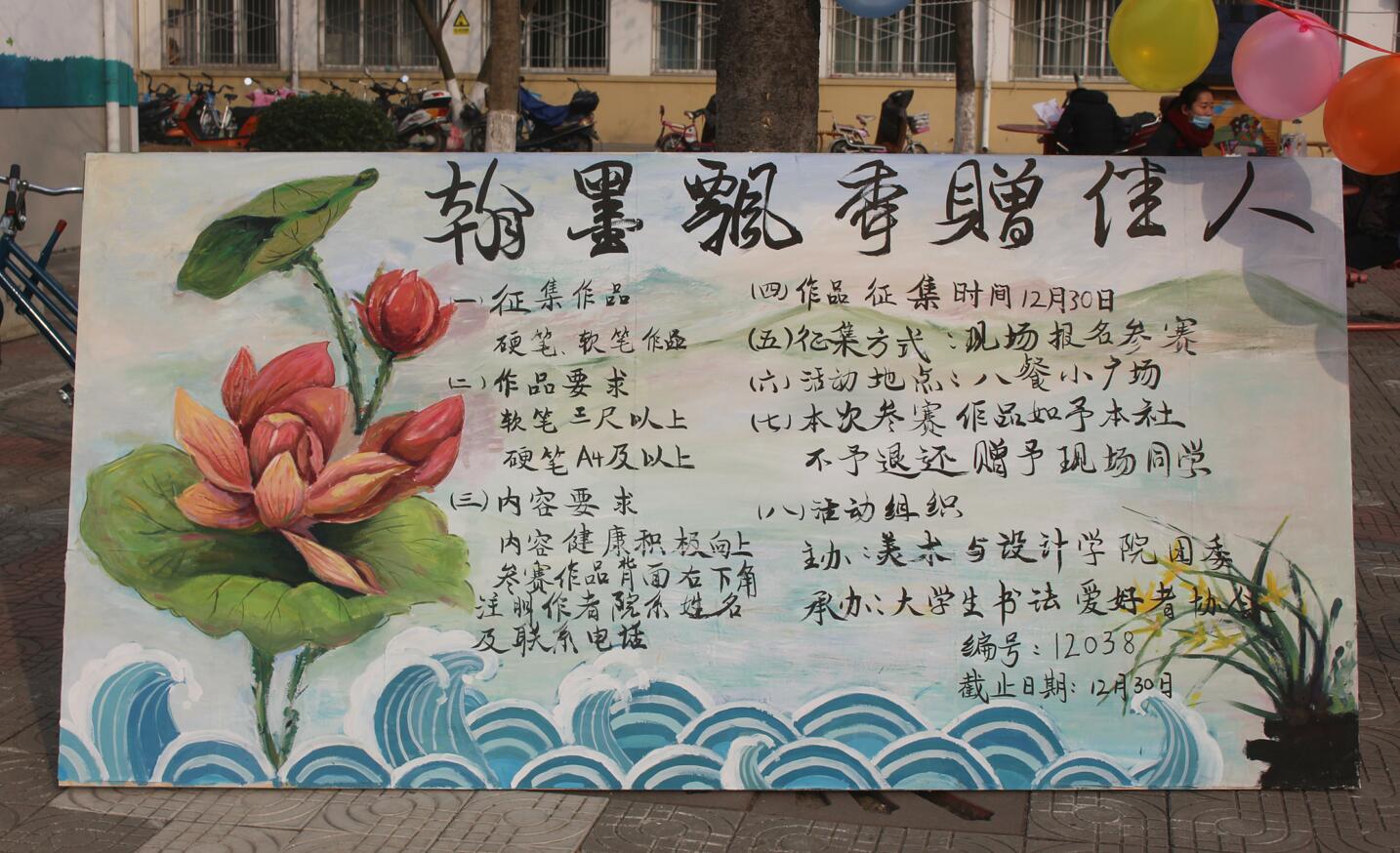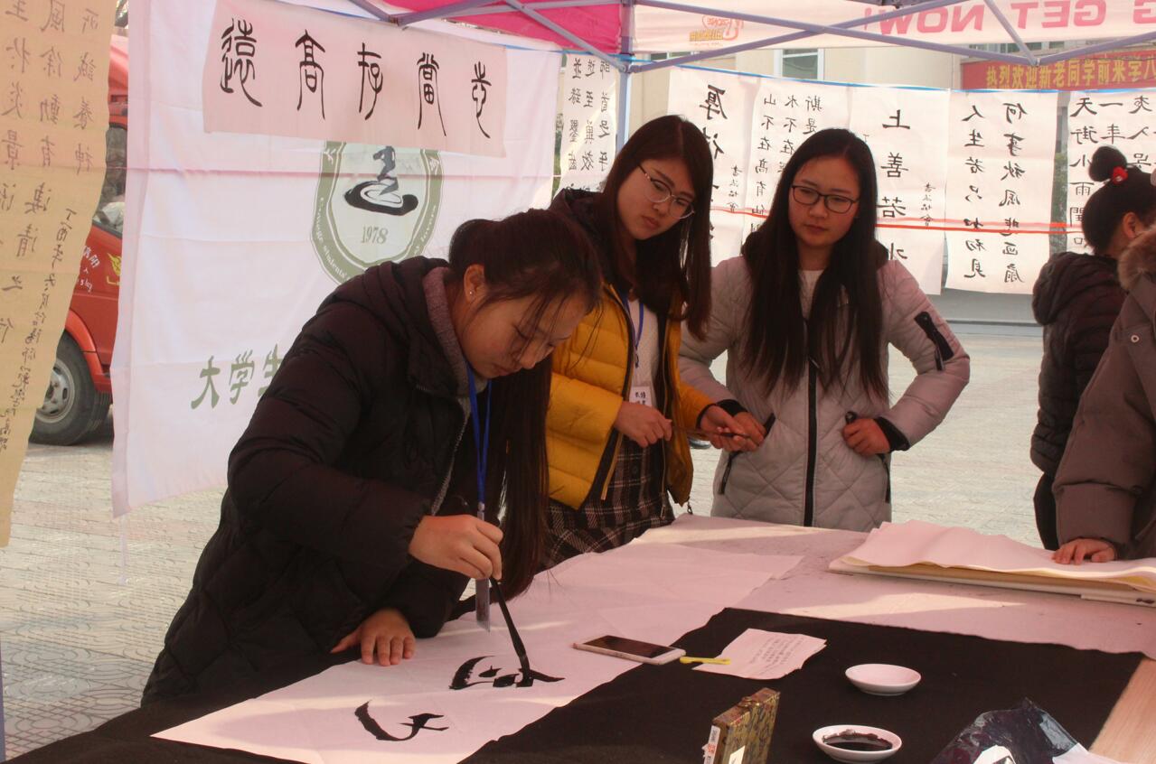 为推进校园书法文化的传播,提高在校学子综合素质,12月30日,由bet36365路检测中心团委主办,大学生书法爱好者协会承办的“翰墨飘香赠佳人”书法大赛于八餐小广场前火热举办。