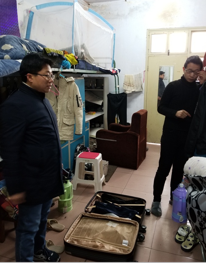 杨轶中一行来到宿舍,首先询问了留校学生目前在校的生活情况和车票购买情况,并详细了解同学们的乘车方式、乘车时间及是否能够通车等。走访期间,杨轶中与同学亲切交谈,面对大雪封路的情况,他表示学院会竭力保证滞留学生的饮食、住宿的正常化,如有困难要积极向学院反应,学院会及时解决。他指出学校正在积极解决打车难的问题,已安排送站车辆早六点半至晚八点不间断运行,嘱咐同学们根据自身情况,提前到乘车点乘车,以免耽误乘车时间。最后杨轶中再三强调在离开宿舍前同学们一定要切断电源、关好门窗,杜绝安全隐患的发生,同时他叮嘱同学们乘车时保管好财物,确保自身财产安全。