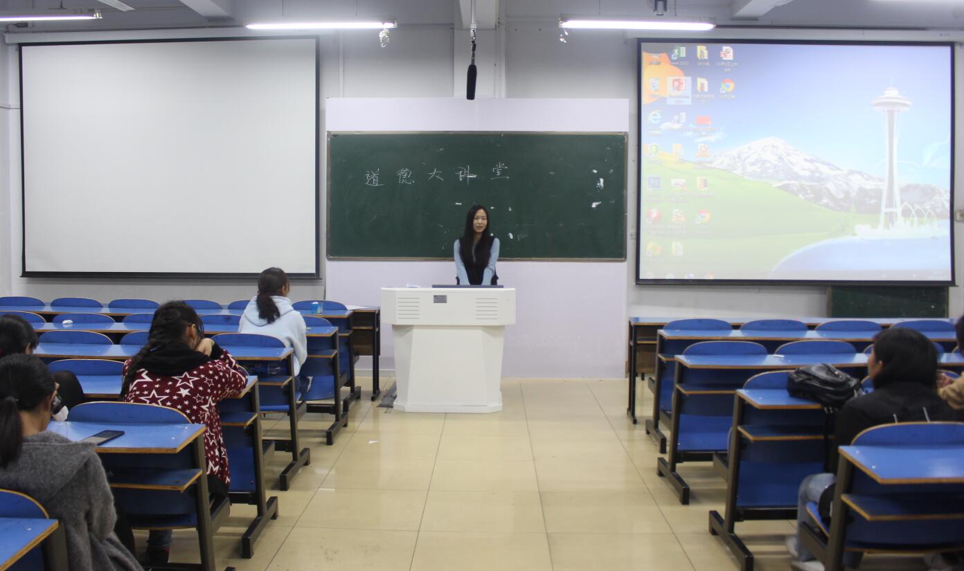 饶海虹首先与同学们分享了道德大讲堂活动开展的意义,她说,道德修养是一个人能否与他人友好相处的的关键因素,是一个能否在社会上立足的重要原因。她指出大学生正处于人生观、价值观、世界观的成熟期,因此培养自身道德内涵是树立正确三观的重要途径。谈到道德建设工作时,饶海虹表示,道德不仅仅体现在对别人的礼貌和尊重,更体现在一个人是否能为集体奉献和考虑,随后,她结合近期新生出现的旷操旷课现象,指出出于个人私欲而损害集体荣誉的便是不道德,希望同学们在日后的学习与工作中,可以从点滴小事做起,时刻提醒自己保持基本的道德规范,提高自身的道德涵养。