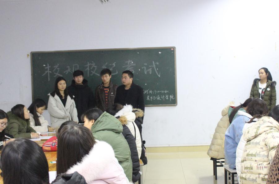 11月29日晚,bet36365路检测中心团委在艺术楼实验室一、217、306、307、308教室组织全体大一新生进行校规校纪考试。辅导员郑波及美院团委学生会成员监考。