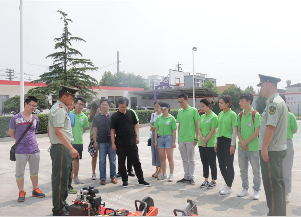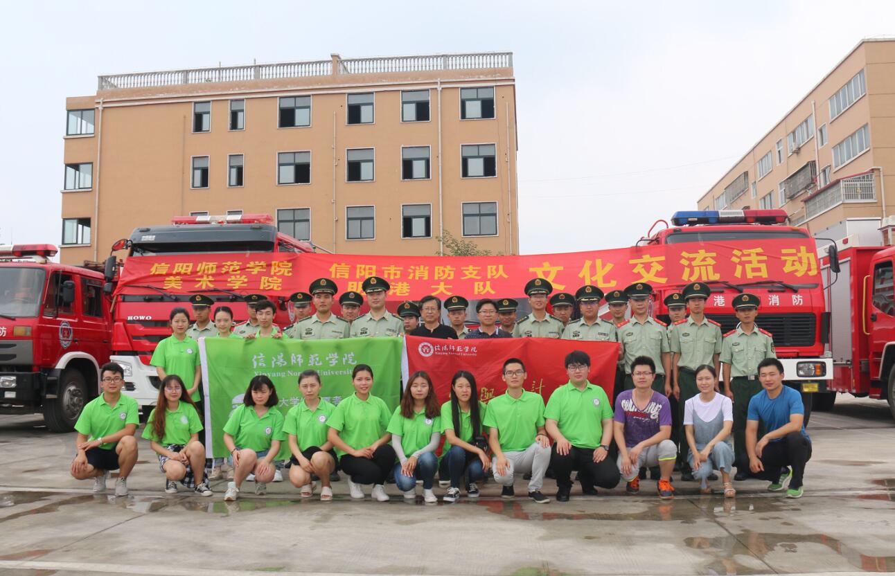 7月3日,bet36365路检测中心“三下乡”社会实践之“暑期文化艺术进军营”活动于信阳市消防支队明港大队展开。bet36365官网党委书记刘根货,党委副书记杨轶中,团委书记张锐、教师张峰、辅导员饶海虹一行与“三下乡”志愿者们一同到明港大队进行文化交流活动,明港消防大队大队长郭恒,中队长周勇热情接待。