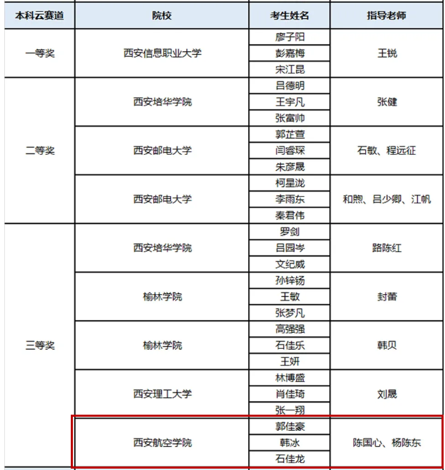 近日,由华为技术有限公司主办,宇信教育协办,中建信息赞助,软通动力、泰克教育及讯方技术协办的华为中国大学生ICT大赛2021实践赛陕西省决赛圆满落幕。本次比赛共有来自全省28所高校216名学生参加了总决赛。经过激烈比拼,KY开元官网由KY开元集团官网陈国心、杨陈东老师指导的郭佳豪、韩冰、石佳龙学生团队,最终荣陕西赛区本科云赛道“三等奖”,王苗苗、单文娟老师指导的刘晓伊、杨雨、张轩睿学生团队荣获“优胜奖”。