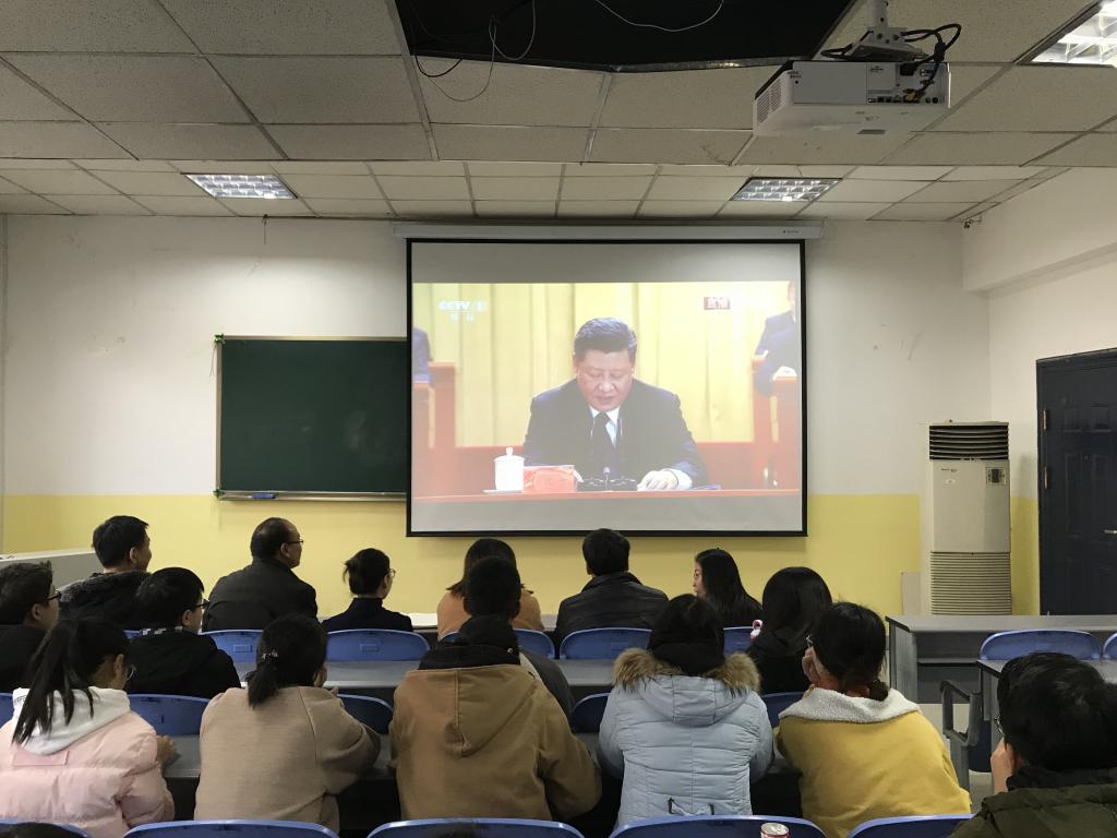 2018年12月18日,KY开元集团官网党总支于南教学楼408教室,集体观看和学习了庆祝改革开放40周年大会直播,党总支书记李小光,院长岳忠玉,副院长丁琦,学生党支部书记曹建波,团总支书记、辅导员杨陈东,部分党员教师以及学生党员、积极分子共20余人参加了此次观影活动。
