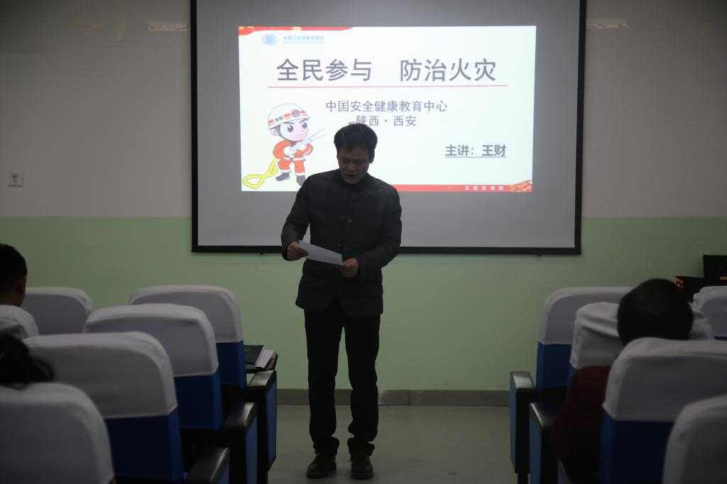 为进一步提升KY开元集团官网全体教师和学生的安全意识,全力普及消防安全知识。2018年12月13日下午,KY开元集团官网特邀中国安全教育中心陕西西安的王财副主任作了主题为“全民参与 防治火灾”的专场讲座。参加讲座的有KY开元集团官网院长岳忠玉、KY开元集团官网党总支书记李小光、KY开元集团官网全体教师及部分学生代表。讲座由岳忠玉主持。