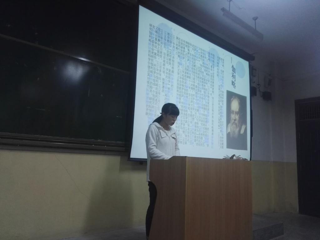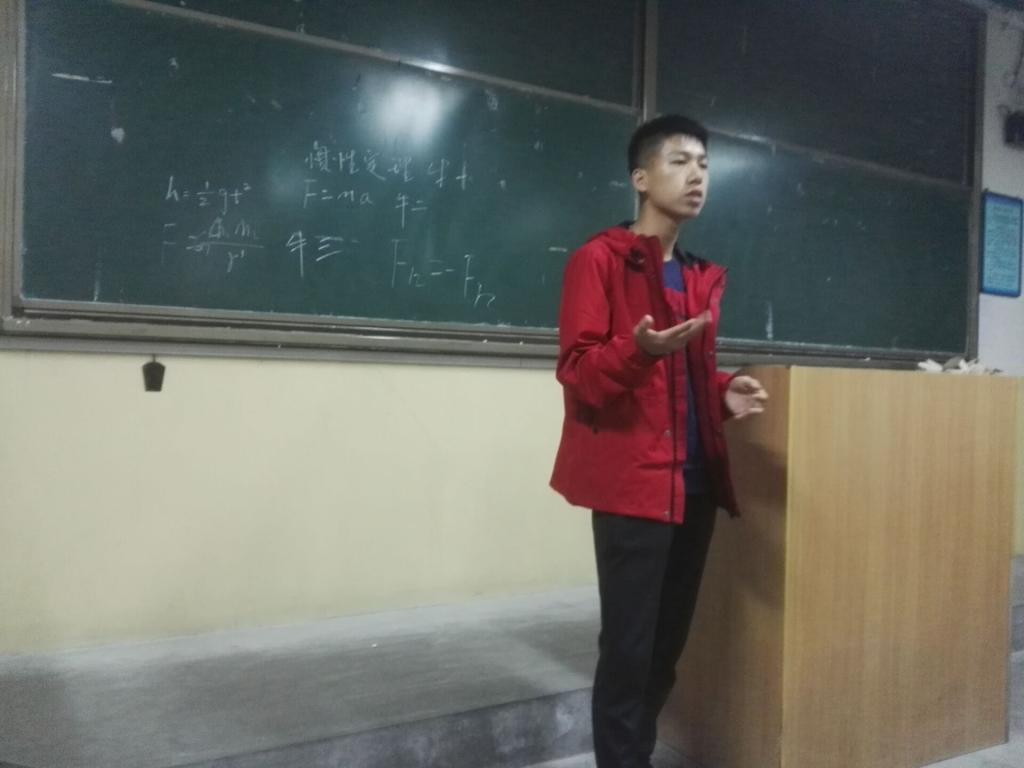 班会开始首先由主持人杜爽引出近代数学、物理对世界发展的重大影响,之后再由各位演讲者为大家分享有关的名人知识。期间主持人通过对演讲者所介绍的有关名人知识的问答,让同学们对于数学、物理学科有了更加清晰地认识。
