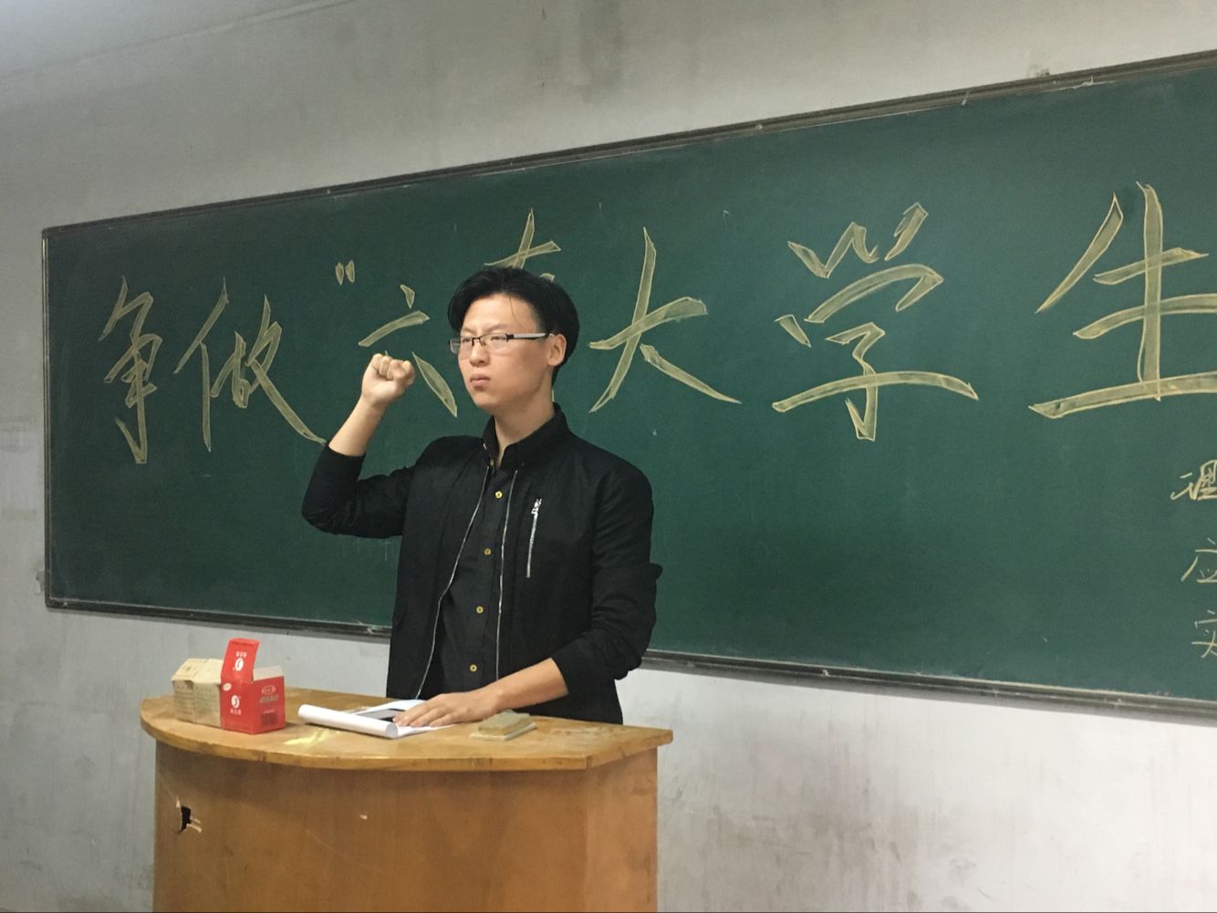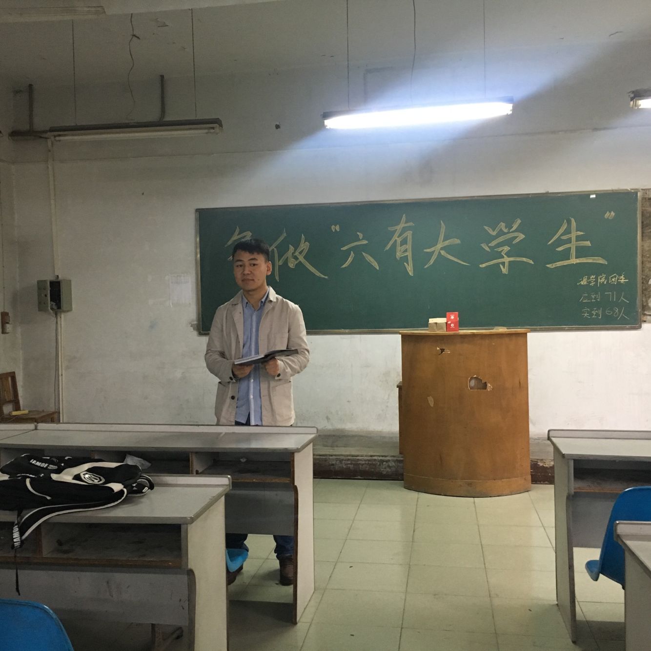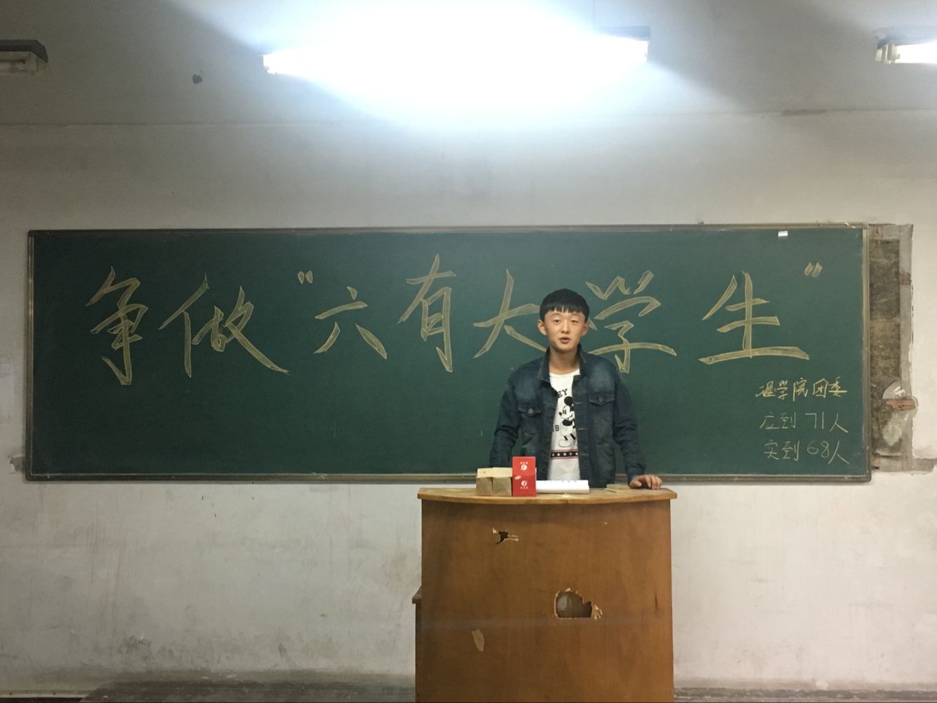 为响应习近平总书记的号召,加强学生管理,KY开元集团官网在10月12日下午4点在北207教室举行了争做“六有”大学生主题班会。班会由组织部部长寇帅佳主持,参会人员为团总支书记杨陈东以及全体大二学生。