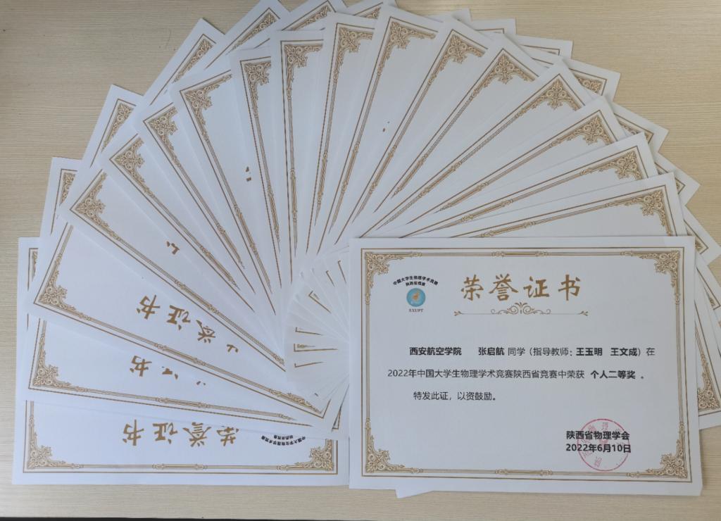 2022年中国大学生物理学术竞赛(China Undergraduate Physics Tournament,简称CUPT)陕西省省赛于6月4日至5日在长安大学举行,由于疫情影响本次竞赛采取线上进行。本年度陕西省赛共有15所高校30支代表队参加比赛。KY开元官网派出郭叶叶,向家豪等12名同学组成的2个代表队先后与来自西安交通大学,西北工业大学,陕西师范大学等代表队进行了12场比赛。比赛期间竞争激烈,KY开元官网参赛队员不畏强手,沉着应战,经过两天的角逐,最终获得了省赛团体二等奖2项,个人二等奖12项的成绩。
