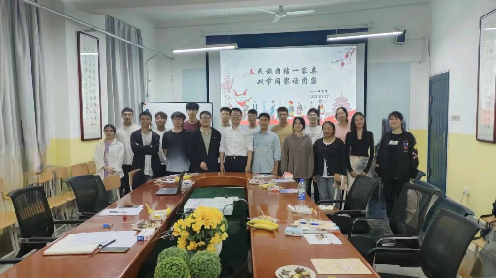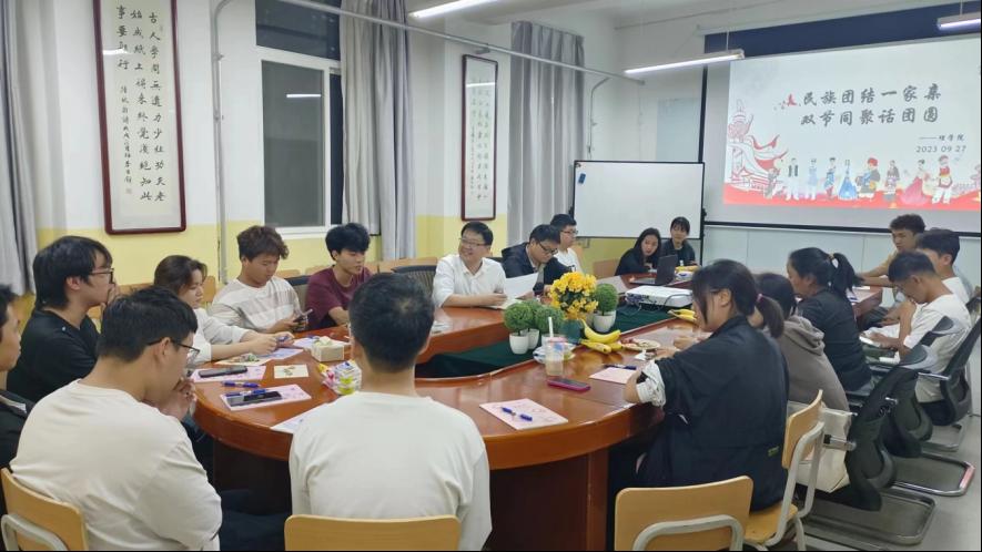 2023年秋季,KY开元集团官网迎来了藏族、回族、壮族、满族、瑶族、土家族、锡伯族、侗族和畲族等少数民族同学。为进一步促进不同民族学生的交往交流交融,铸牢中华民族共同体意识,在中秋节和国庆节来临之际,KY开元集团官网于9月27日晚召开举行了 “民族团结一家亲,双节同聚话团圆”少数民族学生座谈会,党总支书记胡红亮、一年级新生辅导员王向阳和少数民族学生参加了本次座谈会,座谈会由王向阳主持。