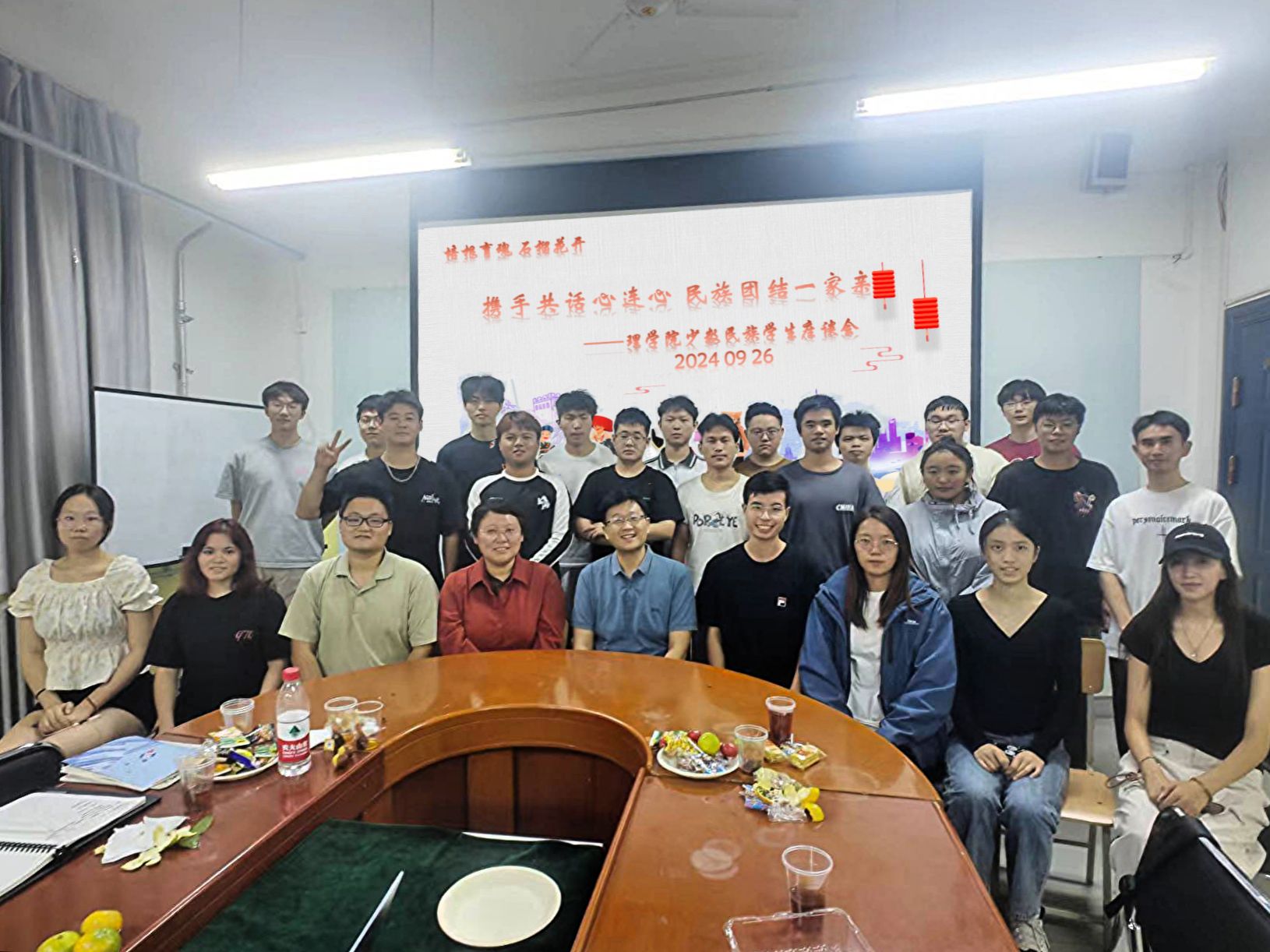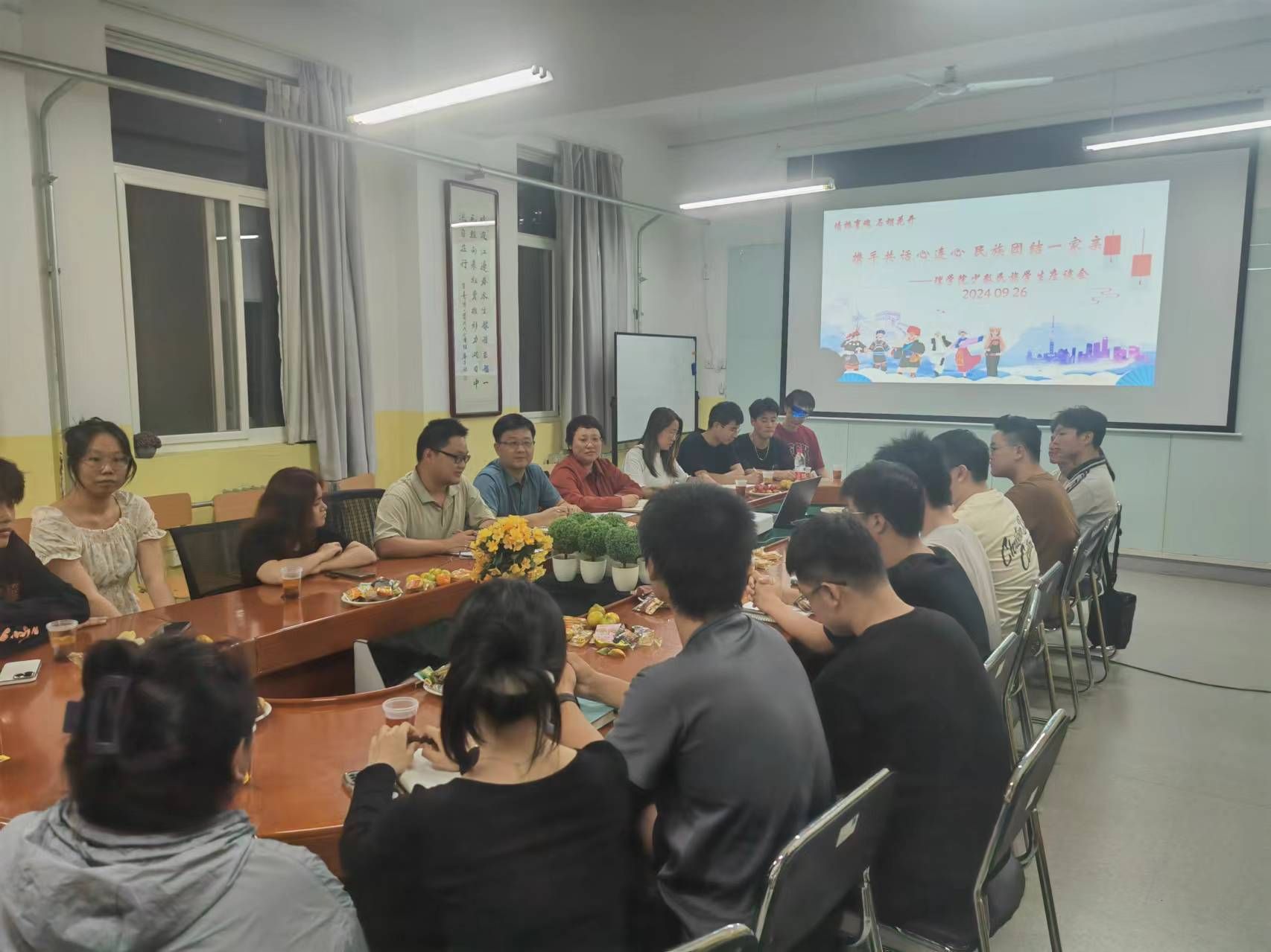 在中华人民共和国成立75周年来临之际,为深入了解少数民族学生的学习和生活状况,增进各民族学生间的交流与融合,KY开元集团官网于9月26日晚举办了“携手共话心连心,民族团结一家亲”少数民族学生座谈会,KY开元集团官网党总支书记胡红亮、学工办主任李扬、团总支书记王向阳、辅导员张岩、曾妍及来自藏族、回族、壮族等20余名少数民族学生参加座谈会。