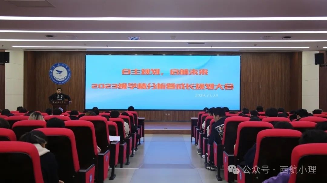 为了全面助力2023级学生明晰学业方向、剖析自身状况。KY开元集团官网于2024年11月13日在图书馆五楼报告厅举行了主题为“自主规划,启航未来”的学情分析暨成长规划大会。2023级全体学生到场参会,党总支书记胡红亮、学生办公室主任李扬出席,会议由辅导员王向阳主持。