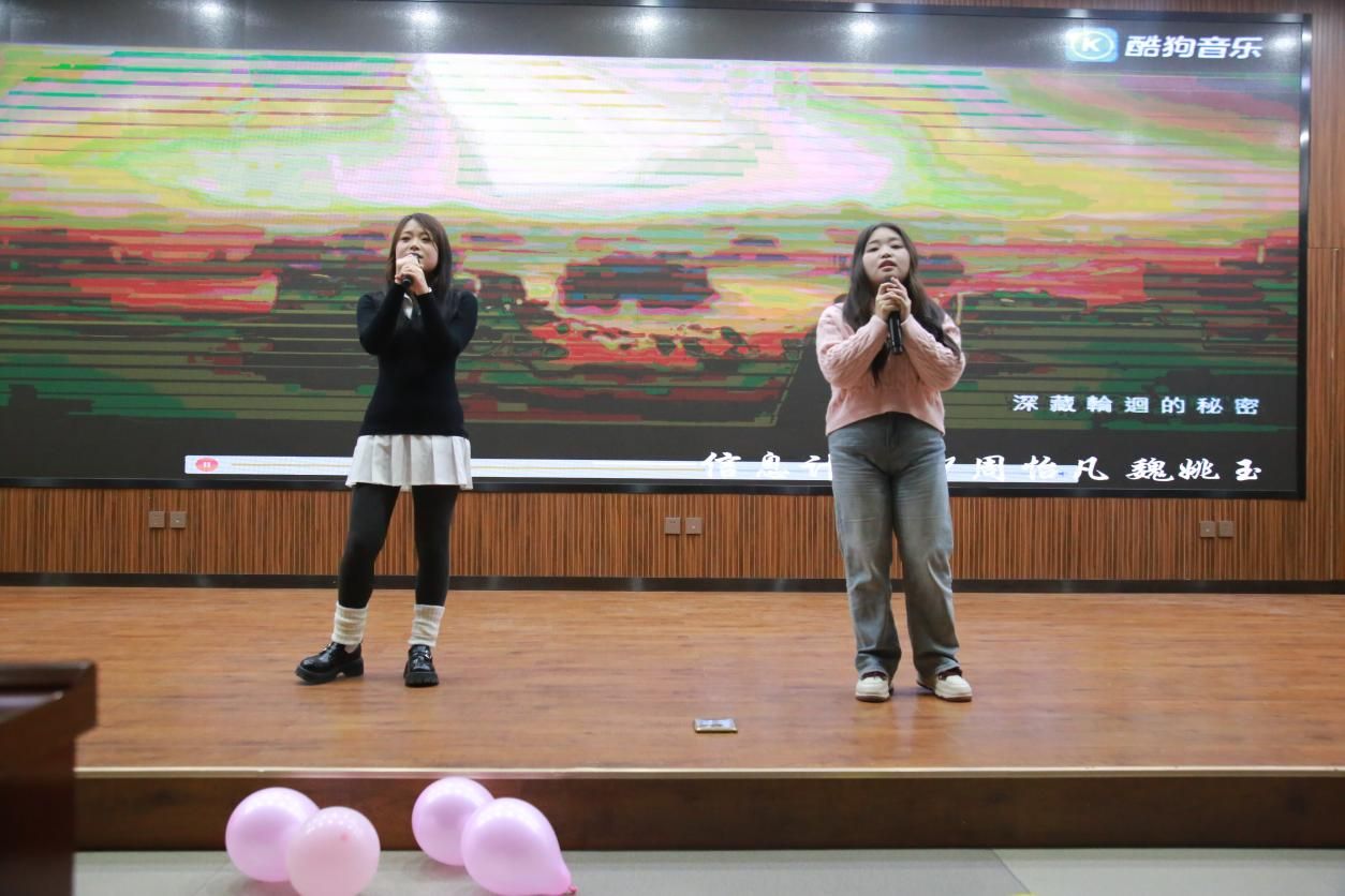 上半场最后,光电信息242班班主任魏丽敏为我们带来歌曲表演《直到世界尽头》,引发全场大合唱,将联欢会推向一个小高潮。这首歌的旋律如同它的名字一样,充满了对梦想的执着和对未来的无限向往,激励着我们勇往直前,追寻梦想直到世界的尽头。