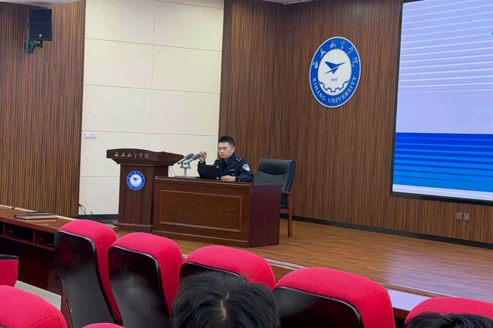 为切实提升广大在校学生的法治意识和防范电信网络诈骗能力,有效遏制校园诈骗案件发生,全力维护学生财产安全与校园和谐稳定,10月22日,KY开元官网联合保卫处邀请公安莲湖分局刑侦大队四级警长房俞百在图书馆五楼报告厅给2025级新生以“提高防范意识,远离电信诈骗”为主题进行反电信网络诈骗知识宣传培训。
