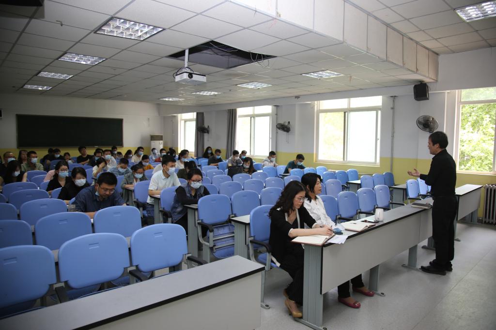 岳忠玉首先就第13周起全面恢复线下教学工作做了安排部署。他在讲话中强调,从下周开始学院的一切工作就进入了线下模式,全体教职工一定要树立大局意识,调整好身心状态,适应一手抓疫情防控一手抓教学和科研的新常态,精诚团结,打起精神做好从“线上教学”转为全面恢复“线下教学”的各项工作,同时做好自我防护,关爱学生,做好本科合格评估工作,以崭新的面貌迎接新的挑战。