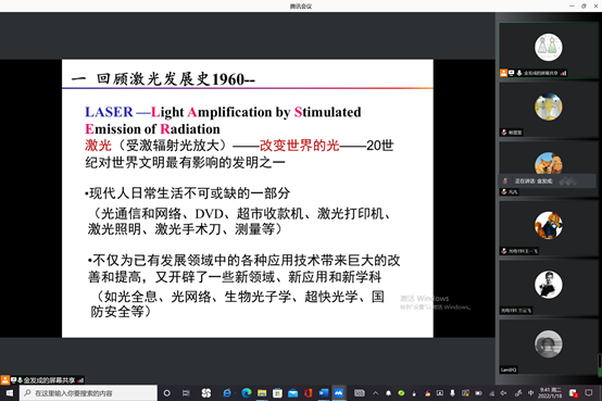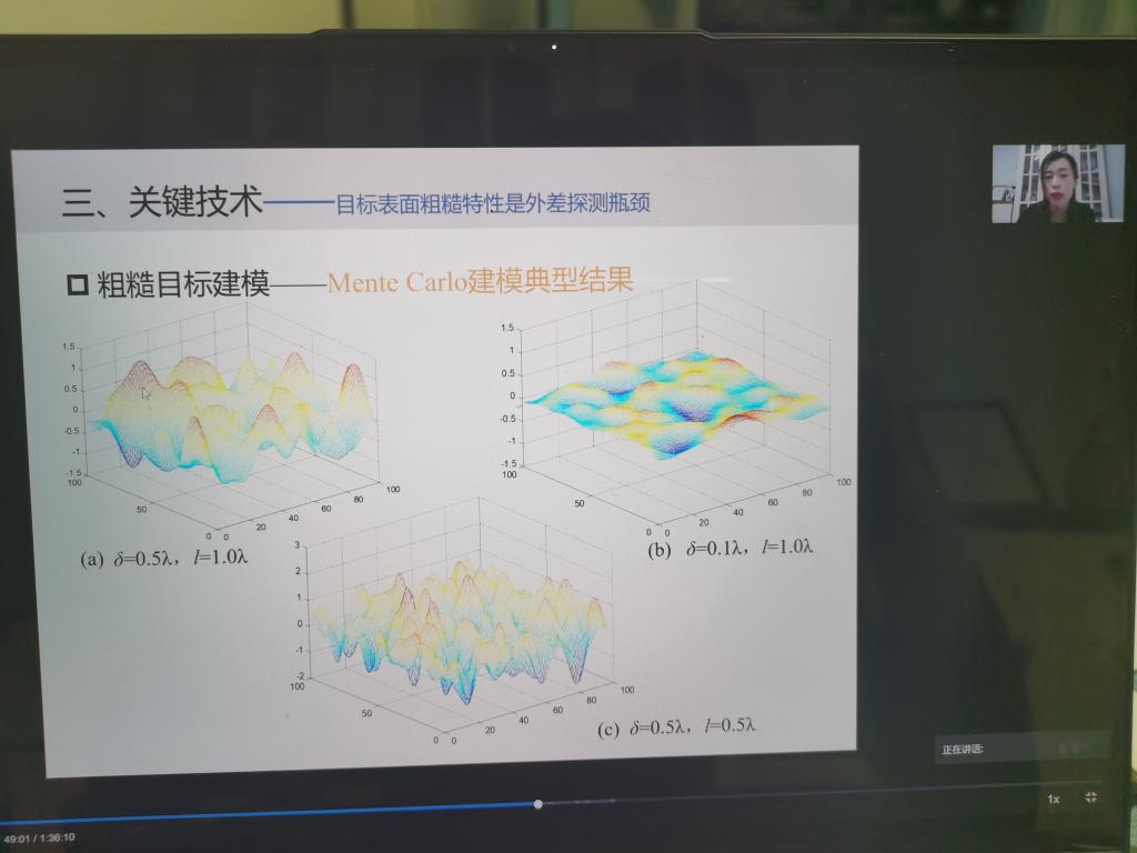 1月5日晚上7点,党文佳老师以科研项目为依托,介绍了粗糙目标光外差探测技术的应用背景、瓶颈问题以及粗糙目标建模的蒙特卡罗方法,鼓励光电信息科学与技术专业学生,在科学防疫的基础上,积极投身于学术研究中,学习光电检测和相干光通信相关知识,共同迎接新学期的到来。