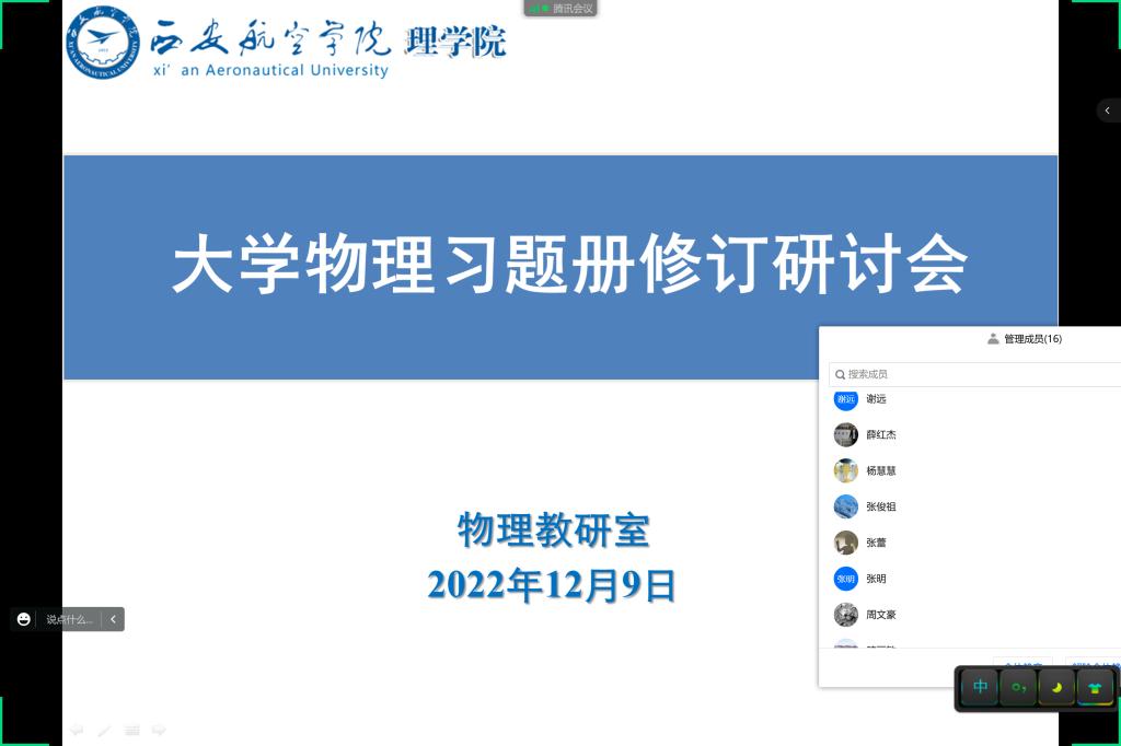 12月9日下午2点,KY开元集团官网物理教研室线上开展了“大学物理习题册修订”研讨会议。校级督导张俊祖、KY开元集团官网副院长丁琦和物理教研室全体教师参加了此次会议,会议由物理教研室主任王小梅主持。