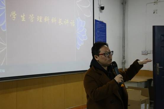 接着,张岩对本次学风建设月活动的目的和内容进行了讲解,就课前准备、课堂学习、自习安排、宿舍卫生、实践活动等方面向同学们提出了要求,鼓励同学们积极参加学院内外的各项校园活动及志愿活动,认真学习网上主题团课,希望同学们以学风建设为契机,促进良好学习风气的形成。