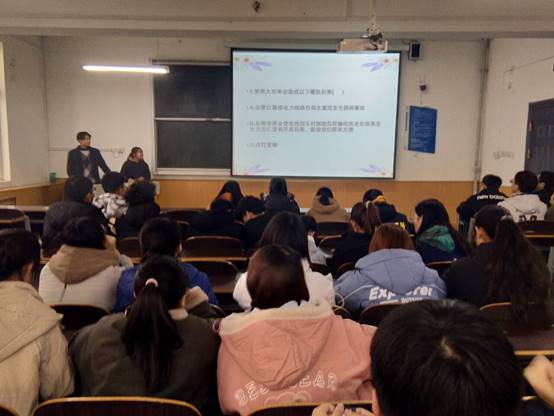 知识竞赛由刘旭朝和徐欣婷两位同学主持,以起立抢答的形式进行,充分调动了同学们的积极性。竞赛题目以宿舍安全为中心,在经过激烈地抢答结束后,两位主持人又为我们普及了很多关于宿舍安全的知识和小技巧。最后活动在大家一片欢声笑语中结束。