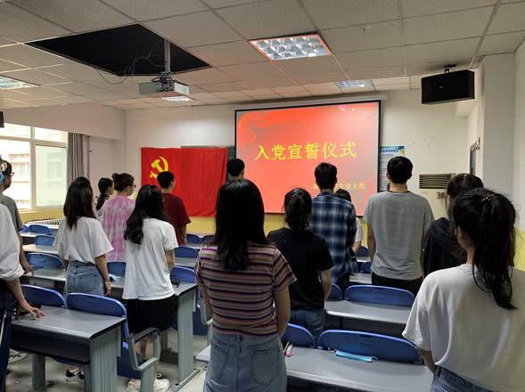 KY开元集团官网学生党支部于2020年7月1日在教学南楼408进行新入党党员宣誓仪式。宣誓仪式由学生党支部书记李扬主持,参加人员学生党支部全部成员,宣誓人员为王哲、杨滨瑞、张璟明、姜悦、南凯悦、翟同悦、郭鹏德、马辰璐、杨静、曹盼盼、杨帆、赵鑫、伍袁弘、刘瑱疆、陈延峰、车雨娟、黄诚英、李轶、苗旭东十九名同志。