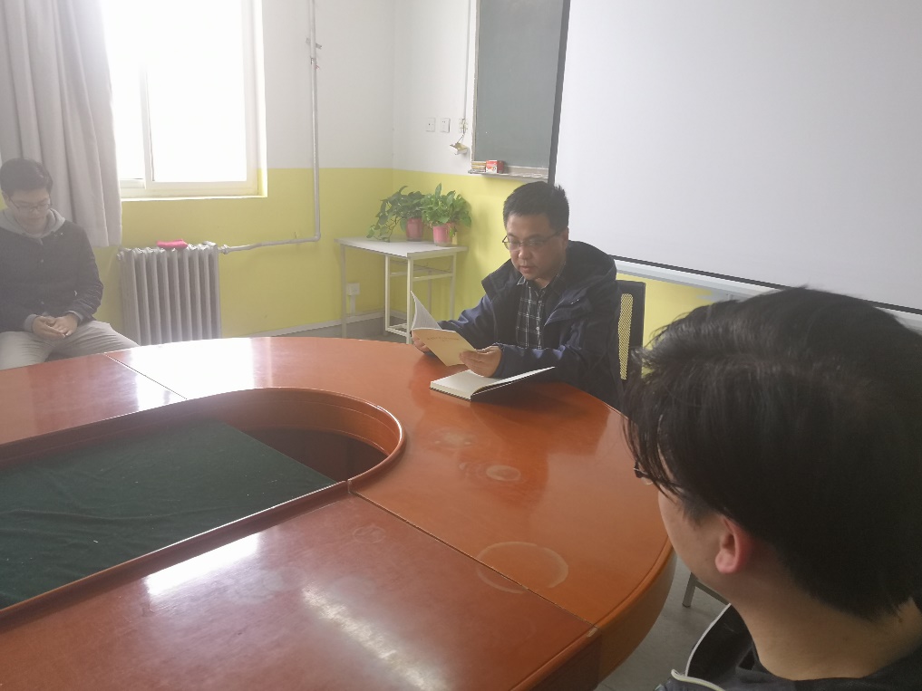 接着,曹建波对上学期同学们的学习情况做出总结,强调党员应为其他同学做出表率作用,坚决不能有挂科现象。接下来,要求党员干部在新的一年中一定要以一个合格党员的标准严格规范自己,及时关注党内事件。