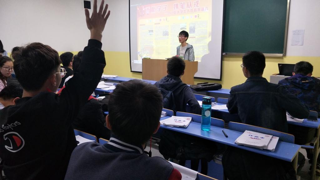 班会开始,首先2104班杨文超向同学们讲述了征兵的意义,他表示党和国家为我们创造了今天的幸福生活,我们就要用我们的力量为祖国明天的发展和安全作出努力,积极参军,保家卫国。之后,杨文超对应征入伍的相关政策进行了详细介绍,充分调动了同学们报名应征的积极性。