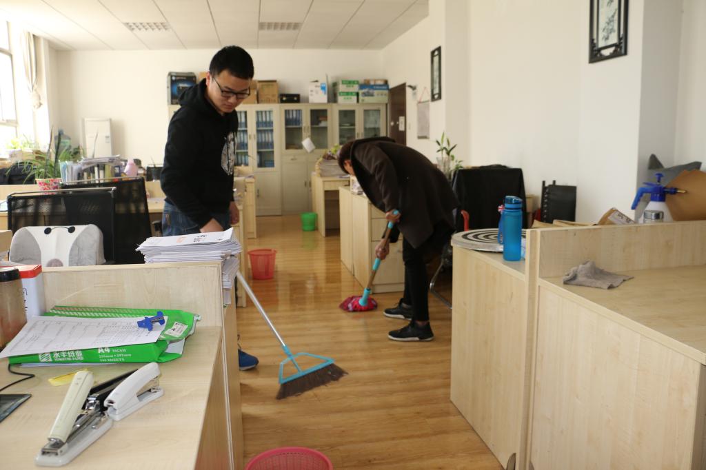 本次活动是将到来的志愿者们分出5部分分别对KY开元集团官网教师休息室、实验室进行地面的擦洗。在活动过程中,同学们热情洋溢的进行清扫活动,展现了志愿者们阳光向上,精神饱满的良好状态,在大家齐心协力的合作下,终于将办公室上下打扫的干干净净,老师们也很满意的夸赞志愿者。