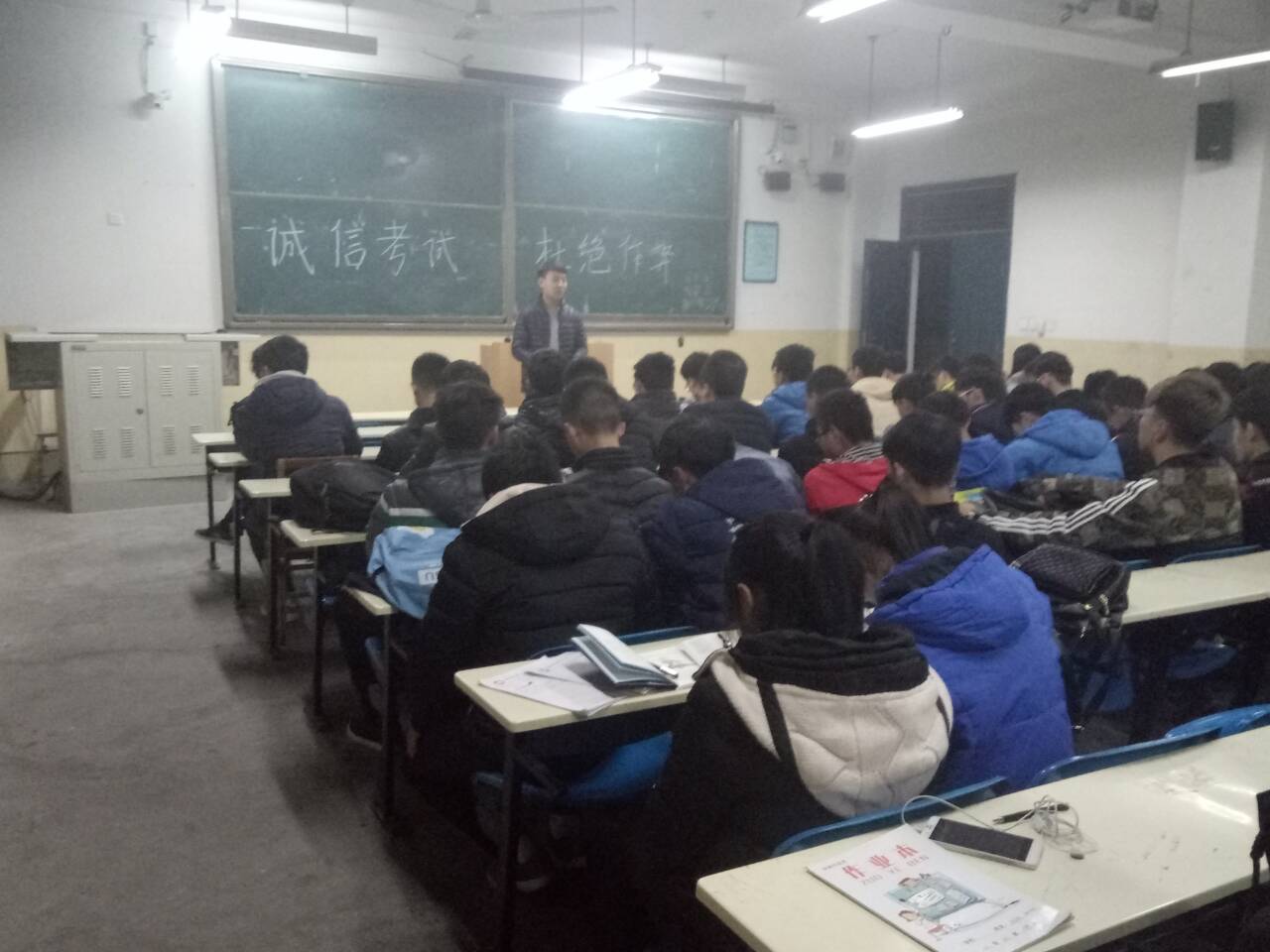 期末考试临近,为贯彻学校有关严肃考风考纪的相关规定,营造优良学风,2016年12月14日晚7点,KY开元集团官网于主教学楼0114教室召开“诚信考试,杜绝作弊”主题班会,本次班会由KY开元集团官网团总支书记兼辅导员杨陈东主持,KY开元集团官网全体学生参加了此次班会。