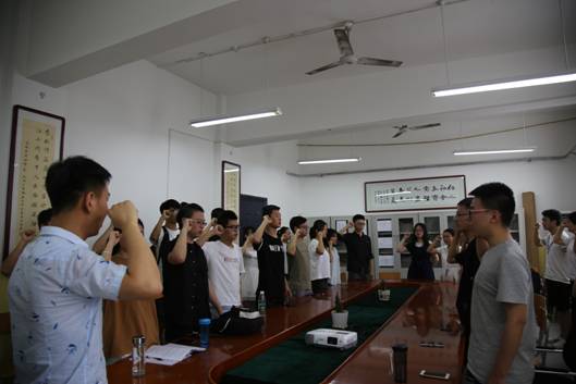 首先,各学生党员分享了近期学习到的党的光荣历史部分,交流了自己的感悟,杨陈东做了总结发言,并要求大家进一步加强理论学习,尤其党史的学习,通过学习更加增强“四个意识”,坚定“四个自信”。最后,杨老师带领大家共同重温入党誓词,全体党员再一次面向党旗郑重宣誓。通过重温入党誓词,学生党员们的精神得到激励,光荣和自豪感从心底油然而生。
