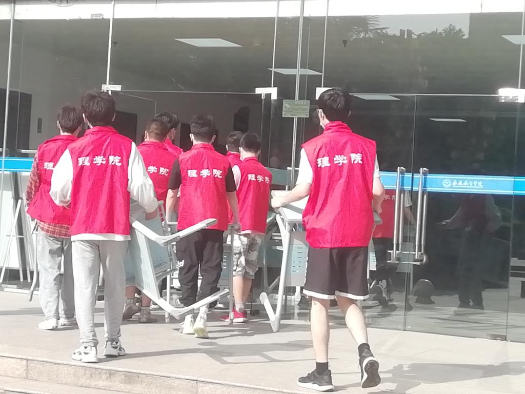4月10日,为保障线下教学工作的有序开展,KY开元集团官网组织“爱国卫生运动”志愿服务活动,各班级同学彻底清扫负责教室,为线下教学工作做好准备,确保线下教学正常进行。20位志愿者将3号学生公寓疫情防控期间的值班桌子搬回教室,保障正常教学工作。搬运完毕后,志愿者们统一做好消杀工作。