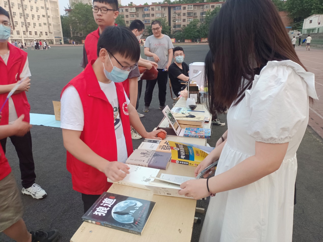 当天下午,跳蚤市场的开市成为了西航操场的一道亮丽的风景线,在学生会其他各部门的积极配合下,在活动宣传期取得了良好的宣传效果。在活动中,学长们将不用的书籍、键盘等物品低价出售,减轻了自己毕业时的行李负担,同时也帮助其他同学能够用比较低的价格获得自己需要的物品。活动的筹办期间,志愿者们不辞辛劳,积极向同学们推荐各种商品,收拾场地,扮演销售者,每一次交易的成功都与志愿者的努力紧密联系。