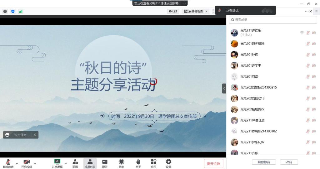 秋天,是美丽的,是香甜的,是硕果累累的,为丰富疫情常态化形势下学生校园文化生活,2022年9月30日,KY开元集团官网于线上举办了“秋日的诗”线上诗歌接力分享活动,大一、大二、大三学生参加。