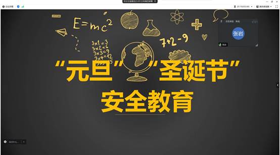 为提高同学们的安全意识和自我保护能力,12月22日,在“元旦”等节日来临之前,在KY开元集团官网学生工作办公室的统一安排下,各班级召开节日安全教育专题班会。
