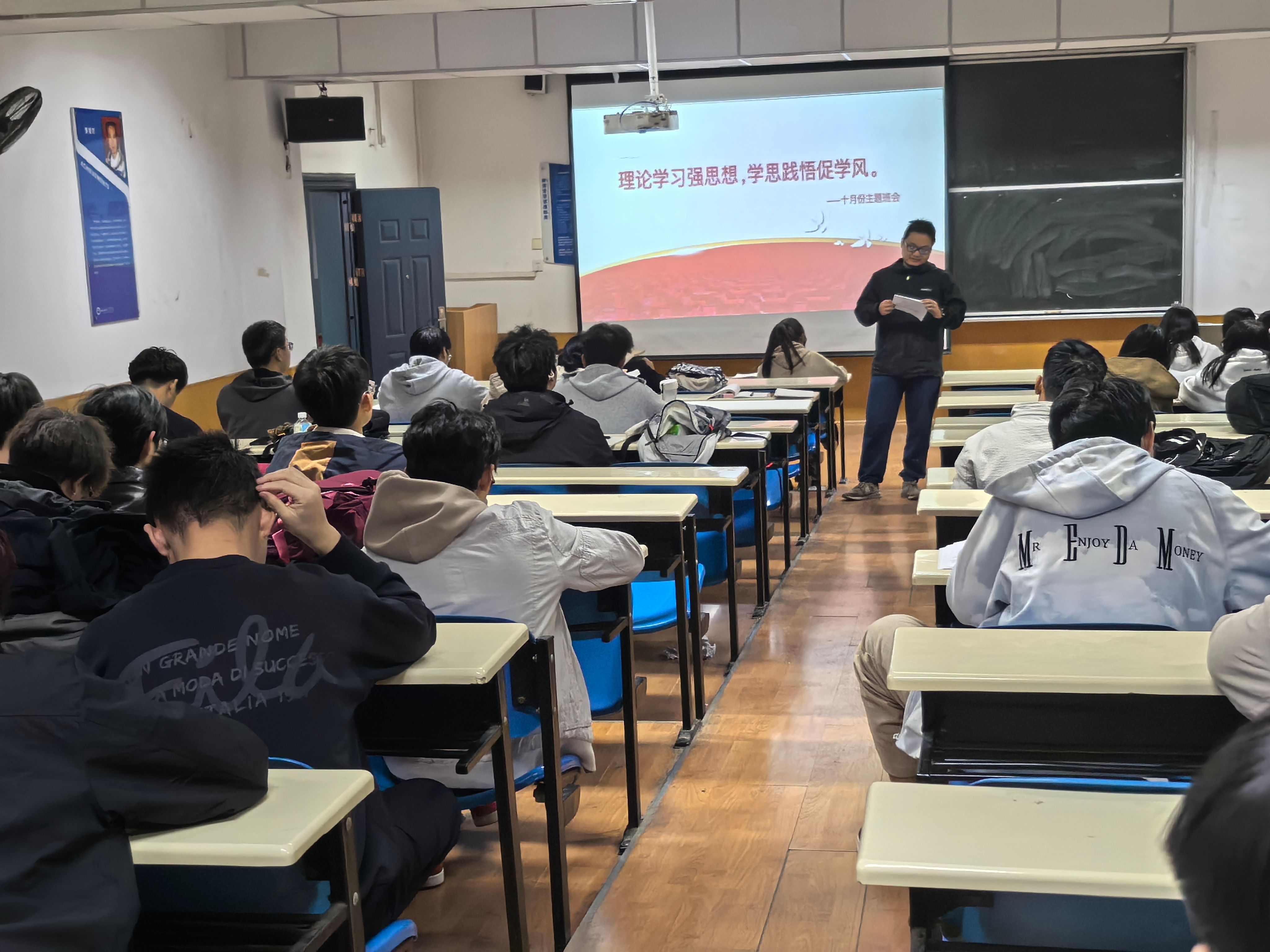 为了深入学习贯彻习近平新时代中国特色社会主义思想和党的二十届三中全会精神,强化学生理想信念教育,培育和践行社会主义核心价值观。按照学生工作部(处)《关于2024年10月主题班会要点》的相关要求,KY开元集团官网各班级于10月份陆续开展了“理论学习强思想,学思践悟促学风”主题班会。