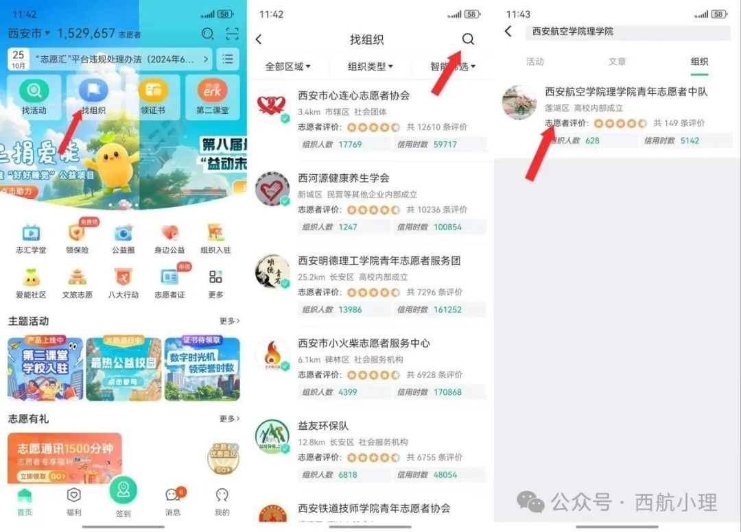 第三步:点击右上角搜索“西安航空学院KY开元集团官网青年志愿者中队”