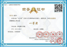 近日,由教育部大学物理课程教学指导委员会中南地区、西北地区和西南地区工作委员会,国家级大学物理课程虚拟教研室(中南大学),湖南省物理学会、江苏省物理学会、青海省物理学会和陕西省物理学会等主办的第五届“九斗杯”全国大学生物理知识竞赛落下帷幕。西安航空学院学子王思纯、刘钦、李立洋3名同学荣获西北赛区一等奖,全国总决赛二等奖。
