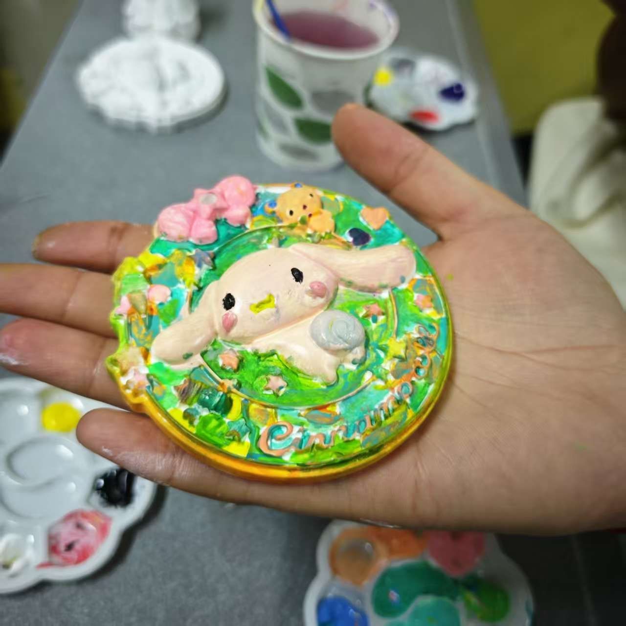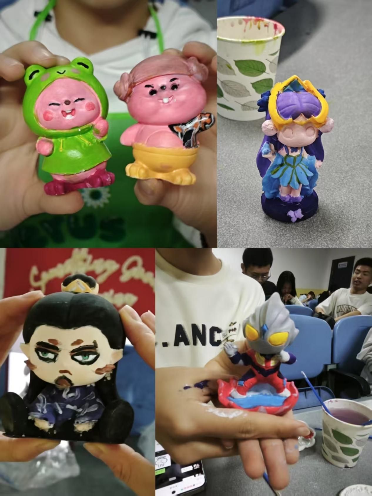 活动伊始,心理健康部康佳盼生动讲解了艺术创作对情绪调节的积极作用。随后,同学们充分发挥创意,运用多彩颜料在石膏娃娃上铺陈描绘。创作过程中,有的同学专注调色,层层晕染;有的精雕细琢,笔触细腻;还有的相互交流创作心得,现场氛围温馨融洽。经过近一小时的精心创作,40余件风格各异的作品精彩呈现。