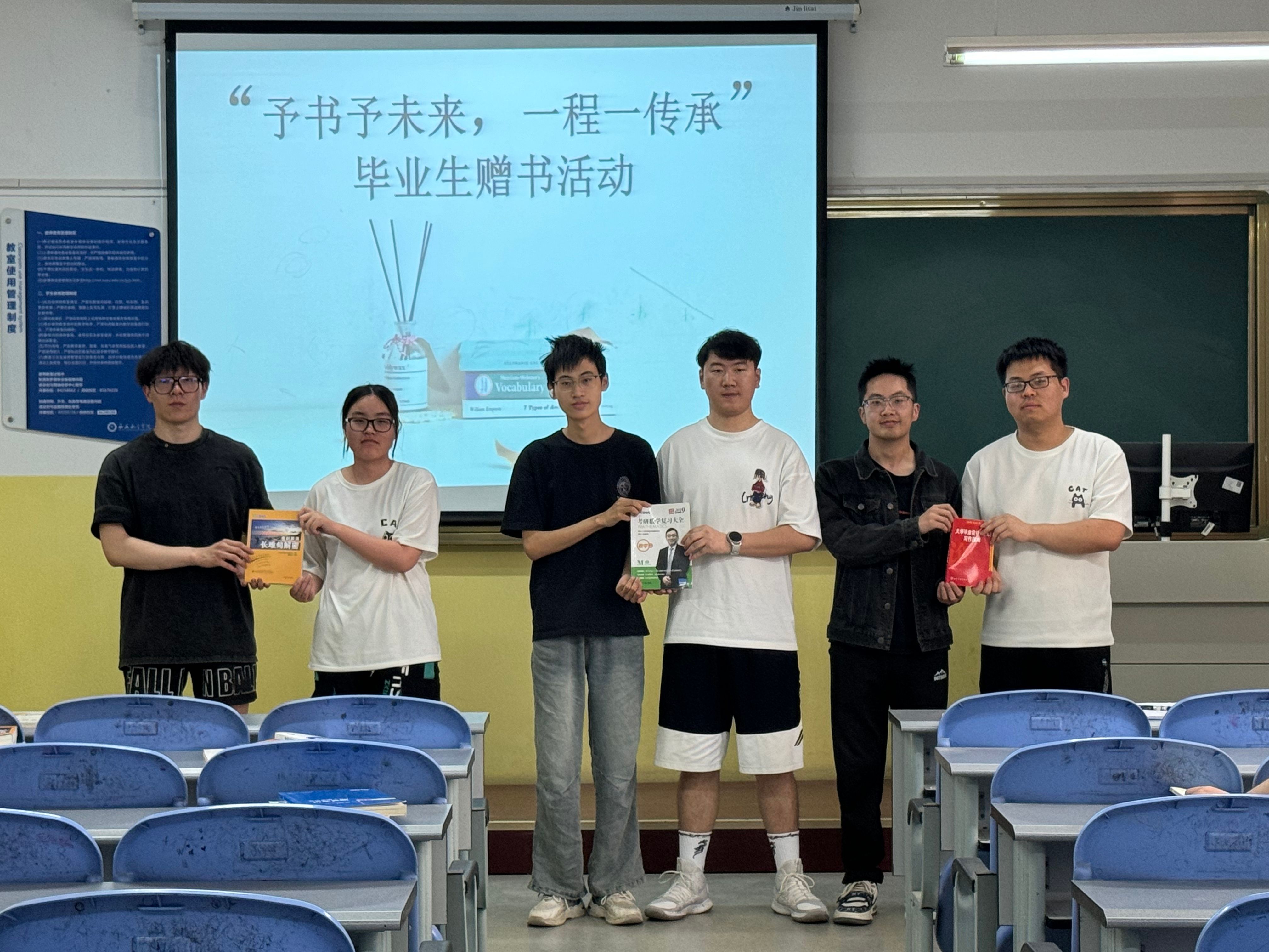 活动伊始,张岩简要介绍了本次活动的意义,强调赠书既可以加强书籍的有效利用,实现知识的传承,又可以增强毕业生与学校的互动和联系,鼓励毕业生将书籍传递给有需要的学弟学妹,让知识在学院内持续流动。随后,毕业生们依次将精心整理的教材、习题集、学术笔记等书籍赠予低年级学生,并在扉页写下祝福寄语,希望它们能继续帮助学弟学妹少走弯路。活动现场气氛温馨,低年级学生与毕业生热情交流学习经验。在校生代表强思怡同学感慨:“这些书籍将会是我们学习和成长的宝贵财富,我们将倍加珍惜并充分利用这些资源,不断提升自己的综合素质和能力水平。”