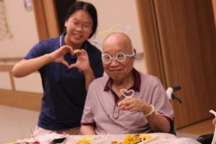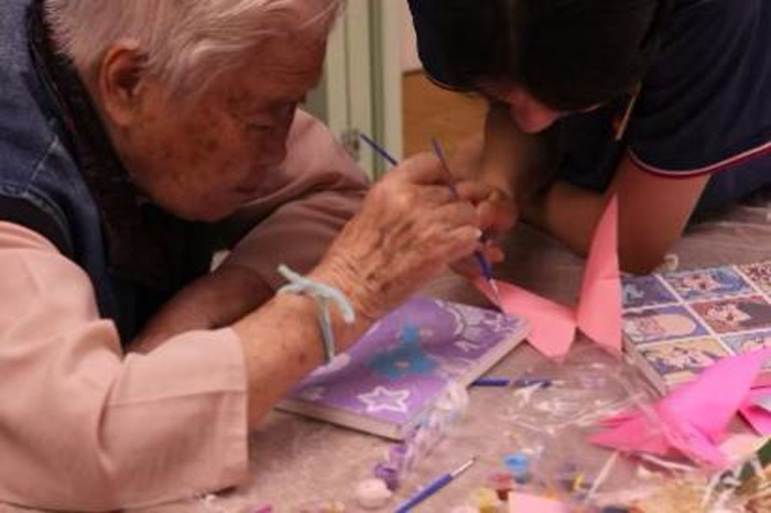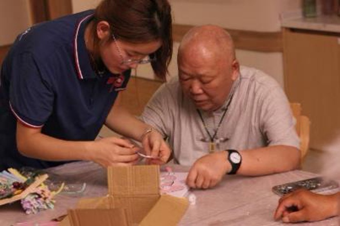 活动现场温馨而有序。实践队员们提前精心布置场地,备齐了玫瑰、雏菊、满天星等各色干花材料以及相框、胶水、剪刀等制作工具。活动伊始,志愿者们采取“一对一”或“多对一”的形式,耐心细致地为长者们讲解干花相框的制作步骤与技巧。从挑选形态优美的花朵枝叶,到构思布局、修剪搭配,再到细心粘贴固定、完成装裱,每一个环节都伴随着志愿者的手把手指导和生动演示。长者们兴致盎然,专注聆听,不时提出疑问,与志愿者们亲切交流,现场洋溢着轻松融洽、其乐融融的氛围。