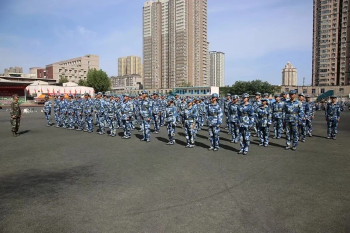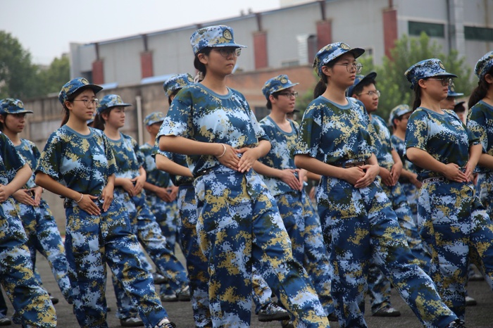 2025级新生身着整齐迷彩服,在操场依次排开,随着指挥员响亮的口令,一排接一排迈着正步向前行进。统一的摆臂幅度、规范的踢腿高度,脚掌落地时发出整齐划一的清脆声响,阳光洒在他们挺拔的身姿上,每一步都透着青春的朝气与军训磨砺出的坚毅,成为操场上一道充满力量感的风景线。