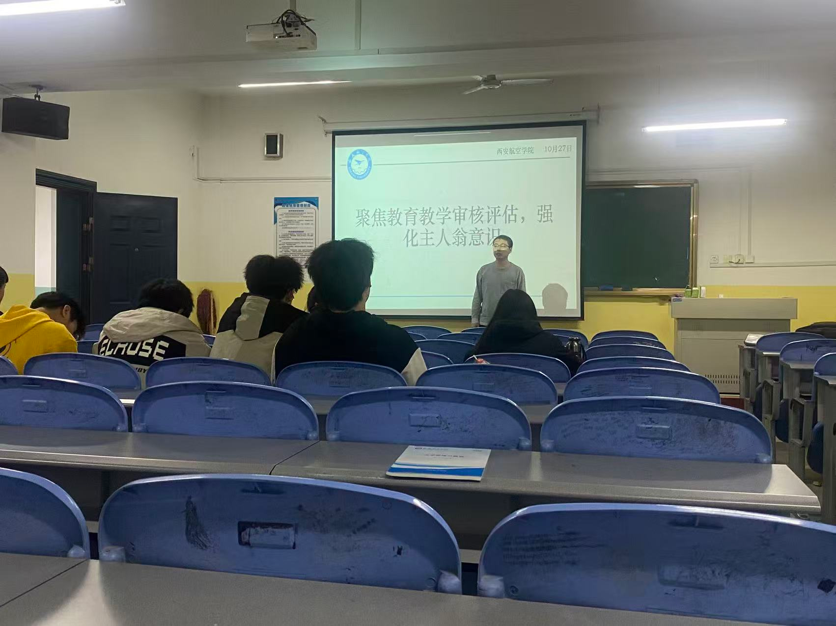 随后各位老师带领同学们认真学习《西安航空学院审核评估知识手册》,了解评估基本内容,并围绕学风建设、日常管理、文明礼仪等关键环节展开了热烈讨论,同学们一致表示,要从课堂纪律、宿舍卫生、言行举止等方面展现西航学子的良好素养。