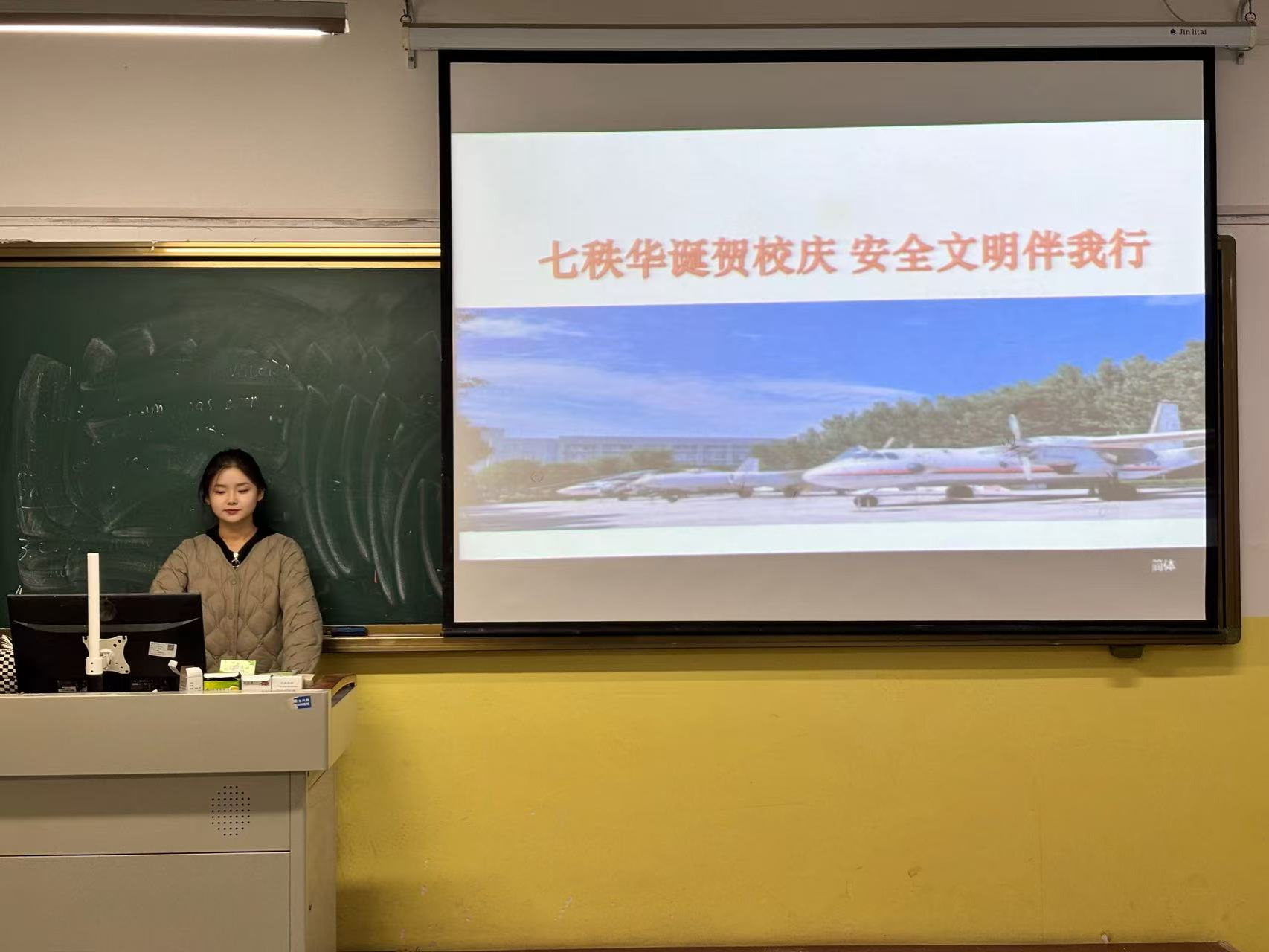 为迎接西安航空学院70周年校庆,配合本科教育教学审核评估工作,并进一步加强学生安全教育管理,KY开元集团官网于十月份陆续组织各班级召开了“七秩华诞贺校庆,安全文明伴我行”主题班会。