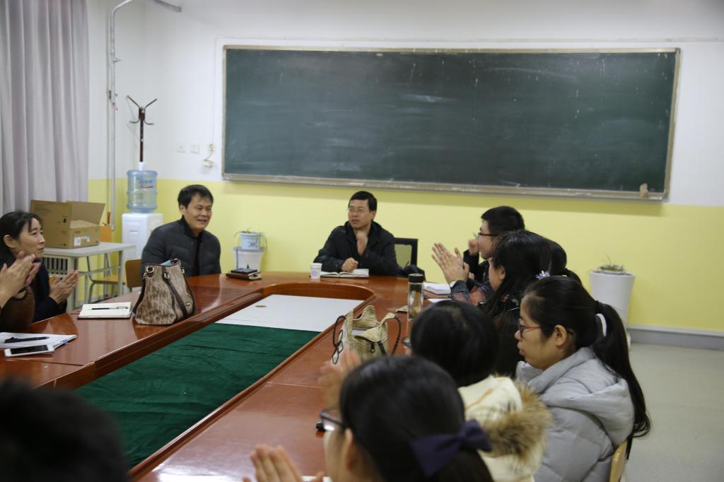 接着,由张明等13位博士老师针对个人的2017年科研完成情况和2018年科研规划进行汇报发言,并对科研中存在的问题提出意见和建议。其中,物理教研室王妙的专利申请受到领导好评。金发成、杨慧慧、魏丽敏三人科研平台的搭建受到领导重视。物理教研室主任郝大鹏、数学教研室主任韩慧蓉就各教研室2017年的科研工作做了汇报。