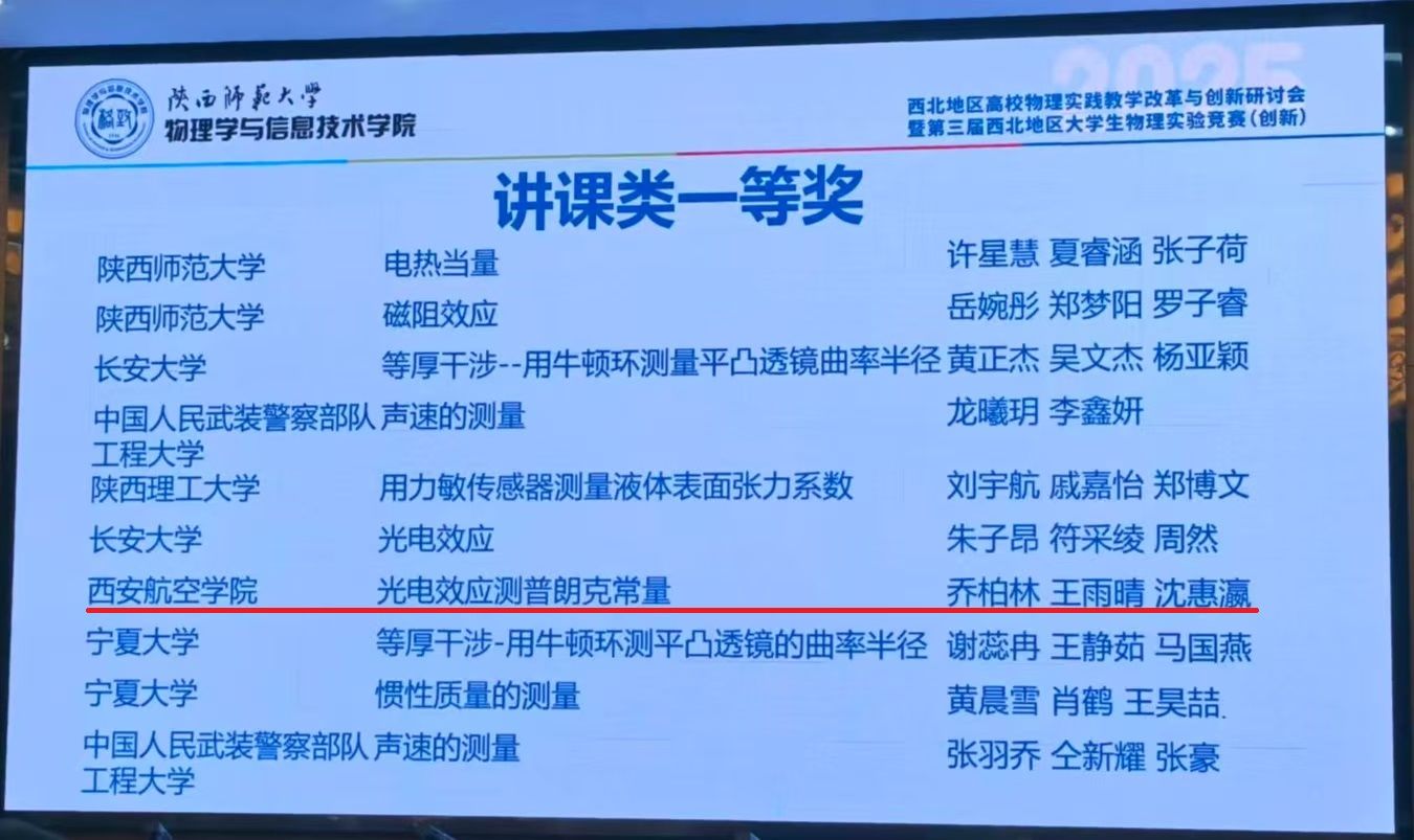 2025年全国大学生物理实验竞赛(创新)西北地区竞赛于近日在陕西西安落下帷幕,本次竞赛由全国大学生物理实验竞赛组委会西北地区分委员会主办,陕西师范大学与西安交通大学承办,来自59所学校的536支队伍参与竞赛。经过校内选拔,KY开元官网推荐的8支队伍参加了本次比赛。经过初赛与决赛的激烈角逐,8支队伍获得一等奖1项、三等奖4项,优秀奖3项。