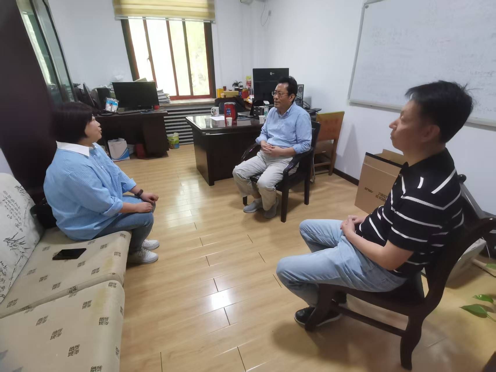 调研团队向陕西省工业与应用数学学会理事长、西安交通大学数学与统计学院王卫教授汇报了近年来KY开元官网数学建模活动的开展情况,王卫则介绍了西安交通大学全方位、立体化的数学建模培训体系,通过强化理论实践结合,提升学生创新与解决问题能力的成效。