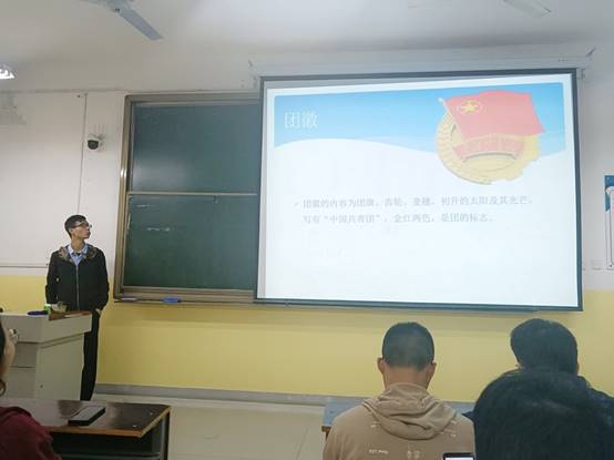 团总支书记张岩说明了共青团的历史和对共青团员的要求、中国共青团与中国共产党的关系,希望同学们能在后续的环节中自觉主动的履行各种义务、承担属于自己的责任。