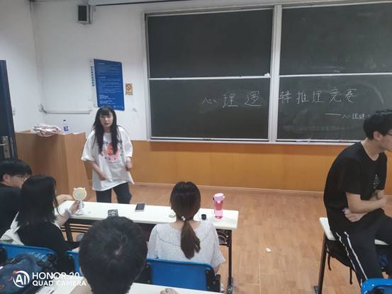 活动参与者共分为五组,活动以心理逻辑推断能力竞赛形式进行,每组进行五轮比赛,根据小组成员自述来推测组内成员谁是“卧底”,从而报出姓名,则“普通人”方获得胜利;若五轮结束未报出“卧底”姓名,则判断为“卧底”胜利。同学们打开思维,积极思考,用逻辑理性分析并解决问题,体验成功的喜悦,在轻松,愉悦的氛围之中养成理智思考的习惯。