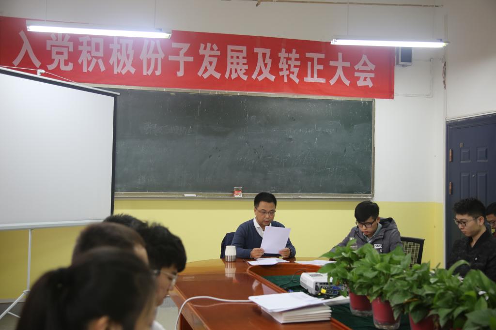 2018年11月30日,KY开元集团官网党总支学生党支部于教学南楼228召开入党积极分子发展及转正大会,学生党支部书记曹建波老师、辅导员杨陈东老师出席此次大会,会议由曹建波老师主持,KY开元集团官网学生党员、预备党员、积极分子等共有50余学生参加。