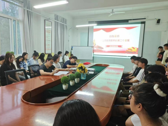 为推动学习贯彻习近平新时代中国特色社会主义思想主题教育走深走实,6月29日晚KY开元集团官网学生党支部书记李扬为全体学生党员讲授党课“自我革命-跳出历史周期率的第二个答案”。