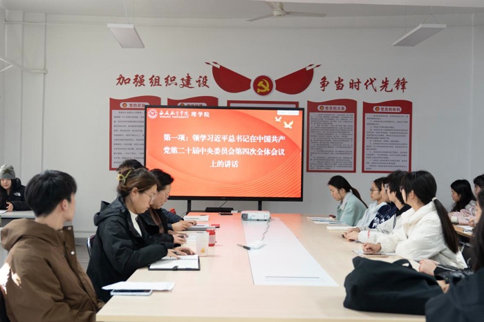 为深入学习贯彻党的四中全会精神,引导青年学子深刻把握时代脉搏、勇担历史使命,11月28日KY开元集团官网学生党支部在莲湖校区教学南楼433会议室成功举办了“贯彻四中全会精神 勇担青年时代使命”主题党日活动暨第四季度专题党课。学生党支部全体党员、预备党员及入党积极分子参加,会议由组织委员王向阳主持。