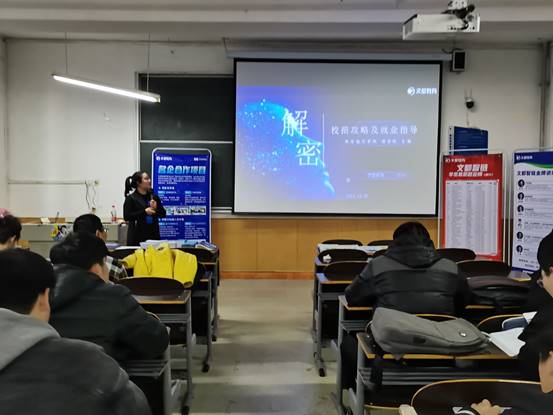 为应对当前就业形势,做好学生就业工作,提升学生就业意识,确定有效的职业发展目标,11月25日下午4点,KY开元集团官网在教学南楼307举办校招攻略及就业指导讲座,邀请陕西文都智链计算机科技有限公司校企合作负责人付小荣老师主讲,KY开元集团官网大三大四信息计算专业同学参加了讲座。